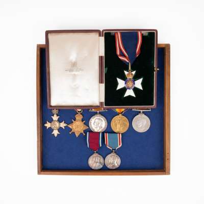 The Royal Victorian Order, OBE 1st Type (Mily), 1914-15 Star, BWM, Vic Medal, 1935 Jubilee Medal, 1937 Coronation, 39-45 Defence awarded to Captain Henry Clement Game Royal Field Artillery, CVO as Examiner of Plays, OBE for the Design Department at the Ministry of Munitions, comprising , Commanders Neck Badge (CVO), Numbered (1143), OBE hallmarked London 1917, 1914-15 Star, (Lieut. H. C. Game. R.F.A.), 1914-1920 British War and Victory Medals, (Capt. H.C. Game.), 1939-45 Defence Medal, unnamed as issued, 1935 Jubilee Medal, unnamed as issued, 1937 Coronation Medal, unnamed as issued. Lightly toned very fine (8)