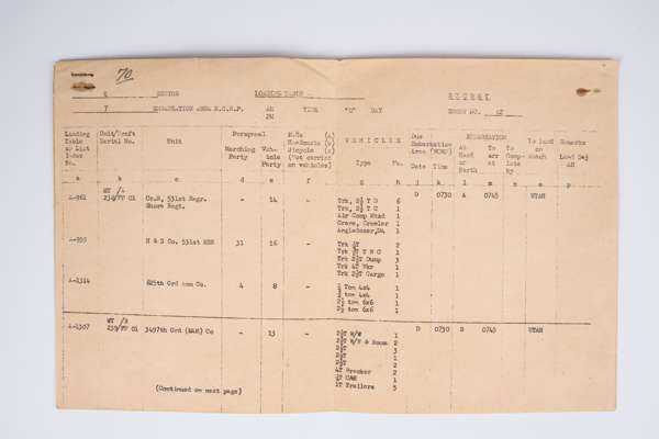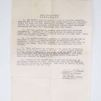 Also an original typed “Area Provost Marshall Operations” sheet detailing the movements of vehicles in England to embarkation points on the coast ready for loading for shipment to Normandy on the 7th of June 1944. Another incredible surviving, historic, piece of paper.