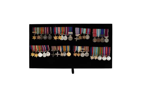 A Collection of 8 Contemporary Mounted Miniature Groups. Comprising, a Battle of Britain Group, a North West Europe Two clasp GSM , Air Crew Europe DFC Group, Military BEM Cyprus Northern Ireland Long Service Group, and RAF North Africa Long Service Group, a Great War 1914 Star DFC MC Group of 5, a Candain Battle of the Atlantic Group and an Air Crew Europe EiiR Coronation court Mounted Group of 5 , groups as seen (Lot)