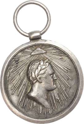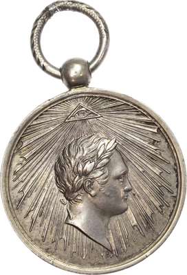 Russia. Alexander I AV Medals, for the Taking of Paris. 1814. (x2). Bust of Tsar right with rays of light emitting from all seeing eye / ЗА ВЗЯТIЕ ПАРИЖА 19 МАРТА date below, within wreath, loop top mount for suspension as issued. a) 13.10g, 28mm. b) 7.90g, 24mm. Diakov: 375.1.