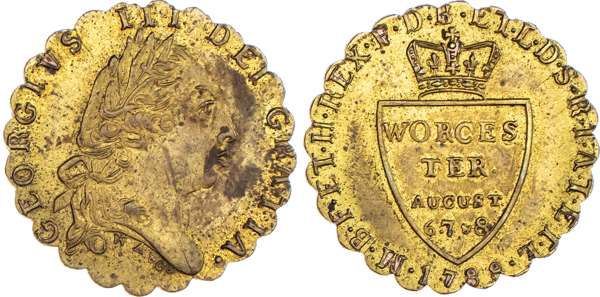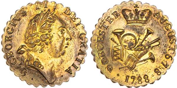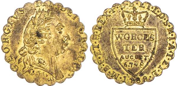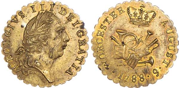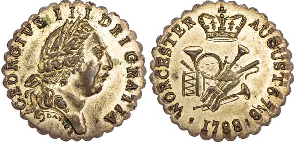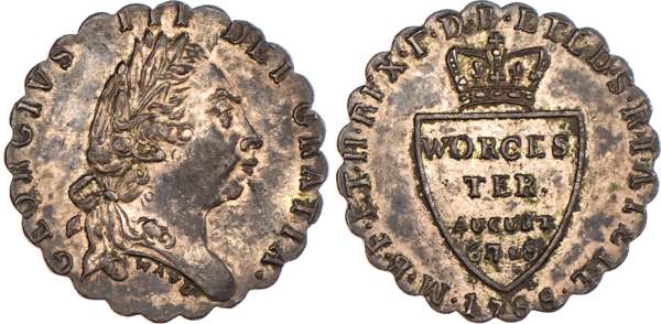 Worcester, Visit of George III silvered medalet Halfpenny 1789, bust right of George III, rev. crowned