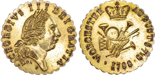 initials IB below the bust, rev. musical instruments under a crown and dated 1788, 26mm/3.75gm.