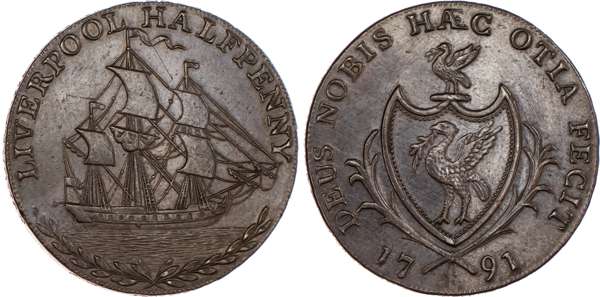 Liverpool, Thomas Clarke Halfpenny 1791, obv....