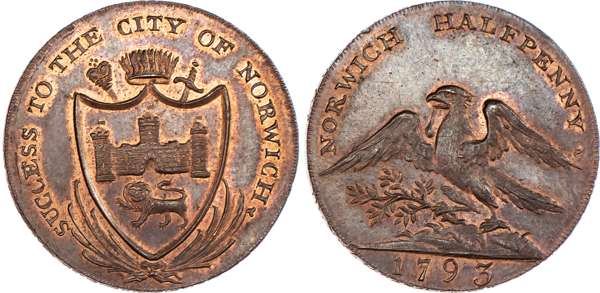 Norwich, Dunham & Yallop Halfpenny 1793, Arms...