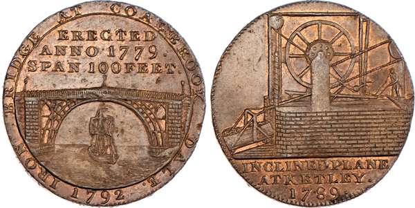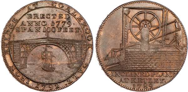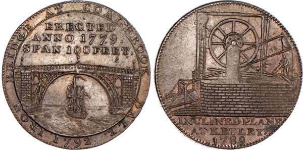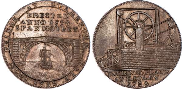 Coalbrook Dale, Richard Reynolds & Sons Halfpenny 1792, Sailing barge below iron bridge, rev. Inclined plane (barge lifting machinery), edge PAYABLE AT COALBROOK-DALE AND KETLEY, 30mm/14.62gm. (DH 9). Another similar but date spaced slightly differently, 30mm/13.26mm. (DH 10). Another similar, but date in slightly different style, 30mm/14.02gm. (DH 14). Another but different die combination, 30mm/11.81gm. (DH 15), all good Extremely Fine, toned with trace of lustre – more lustre on last, DH 10 scarce. [4]
