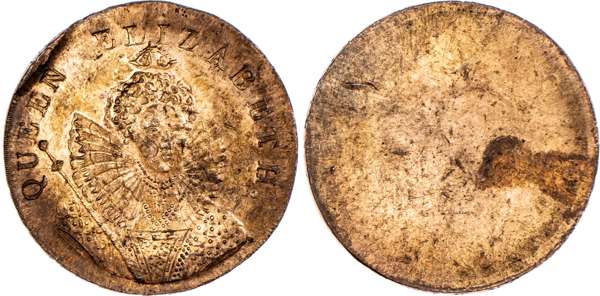 Chichester, James Dally, (linen draper), uniface obverse die trial (1794), Bust half right of Elizabeth I, rev. blank, edge PAYABLE IN LONDON LIVERPOOL OR BRISTOL, 30mm/11.22gm. (DH 14), file marks on the die coming out on the fields, die break at edge at 10 o’ clock, weakly struck, otherwise. good Extremely Fine, with almost full mint lustre. Of the highest rarity and most likely unique.