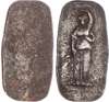 Birmingham, George Barker uniface and early stages die trial, just of image, of the reverse in iron - of his second Halfpenny (1797), as above, showing whole body of Justice holding scales rev. blank, edge plain, 33x17mm/8.31. (DH cf 66), Extremely Fine for issue, grey with toning and two spot of rust on blank side. Unique.
