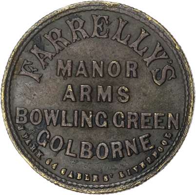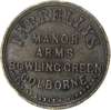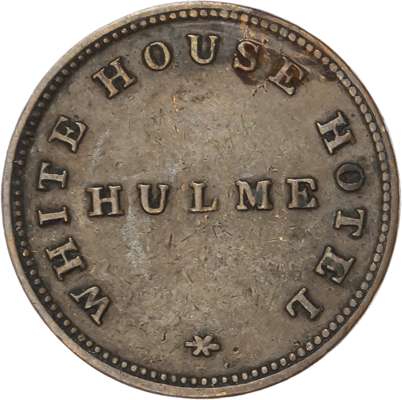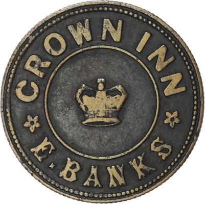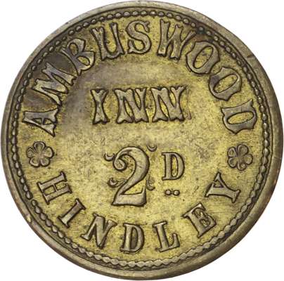 Lancs. Bury, Bell Lane. Grapes Inn, 2d., 26mm. of Mary Holt. VF toned ; Golborne, Manor Arms, 2d., 26.5mm. Farrelly’s. (Park) ; Hulme, Crown Inn, brass no dom. check 27mm., E Banks. , White House Hotel , no denom. 23mm; Hindley (Wigan), Ambuswood Inn , uniface 2d., 25mm. gVF. [5]