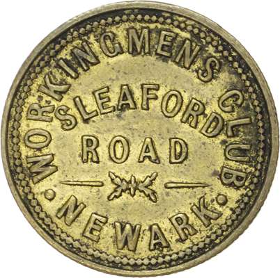 Lot of 5 coins - Notts . Newark. Saracens Head , 2d. 24mm., EF; Newark, Sleaford Rd. Workingmens Club , 1½d. 23.5mm...