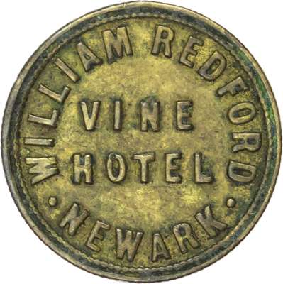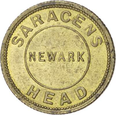 Notts . Newark. Saracens Head , 2d. 24mm., EF; Newark, Sleaford Rd. Workingmens Club , 1½d. 23.5mm., Vine Hotel , 1½d., 23mm. William Redford. aVF, toned ; Nottingham. Dog & Bear, 1½d. 26mm., EF. [4]