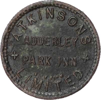 Warks . Leamington Spa, Augusta Place, Willoughby Arms 1½d. 26mm., Good VF; West Mids. Adderley Park, Adderley Park Inn , 3d., 23.5mm. Atkinsons Ltd. (Sale), VF; Birmingham, Aston, Coleshill Street, Prince of Wales 2½d. 26mm., Wm Ingram, (Cottrill) Good VF toned . [3]