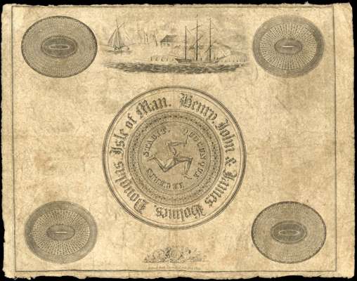 DOUGLAS, Douglas & Isle of Man Bank, for Hy. Holmes Junr. Ino. Holmes & Jas. Holmes £1.,1 January 1848, serial number 2748, Jas Holmes signature, vignette of harbour above intricate design and vignetter of ships on rev. (IOMPM M233, Pick S131). About Fine, very small tear in vignette, but attractive.