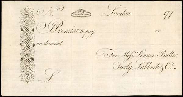 Messrs. Lemom, Buller, Furly, Lubbock & Co. Ltd., Unfilled cheque 177-.; Lincoln and Lindsey Banking Company f…