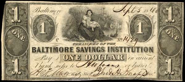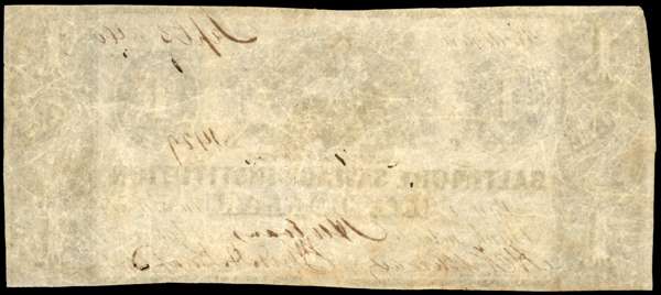 USA, MD. Baltimore, Bank of Baltimore, Uniface Five Dollars, 15 Apr. 1829. Very Fine, iron paperclip stain on …