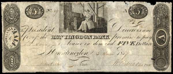USA, PA. Huntingdon, Huntingdon Bank, Uniface Two Dollars, 1 Jul 1817. About Fine.…