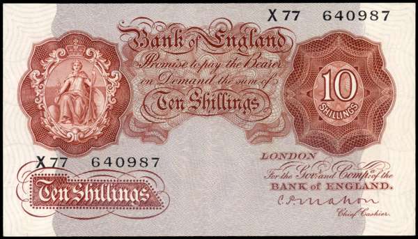 Bank of England, C P Mahon, Ten Shillings Nov. 1928, X77 640987, (Dugg. B210). Very Fine or better, with very slight trace of central crease.