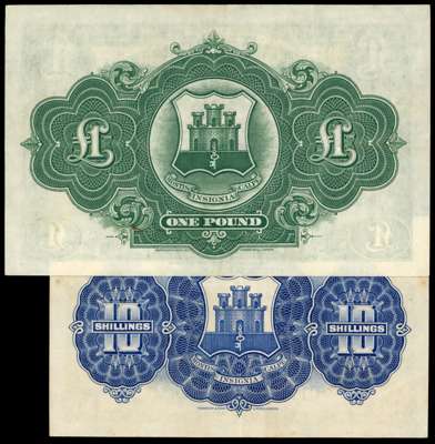 Gibraltar, Government, 1 June 1942, Ten Shillings, C 776797, signature of C. Todd, (Pick 14b); 1 December 1949…