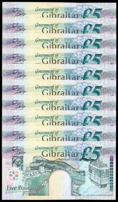 Gibraltar, Government, Five Pounds, 2000, Bristow, consecutive serial numbers MM 006090 to 006099, (Pick 29). …