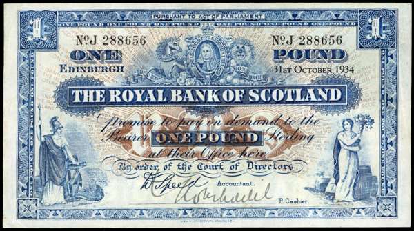 Scotland, The Royal Bank of Scotland, One Pound, 31 Oct. 1934, J 106092, signature of D. Speed, hand-signed by…