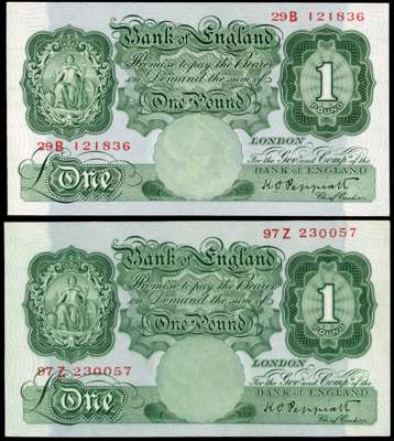 Bank of England, K O Peppiatt, One Pound Oct. 1934, 29B 121836 and 97Z 230057 – the first and last of the seri…