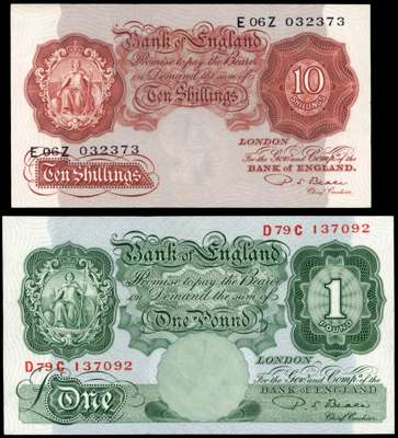 Bank of England, P S Beale, Ten Shillings, Mar. 1950, E06Z 032373,, (Dugg. B266); One Pound Mar. 1950, D79C 13…