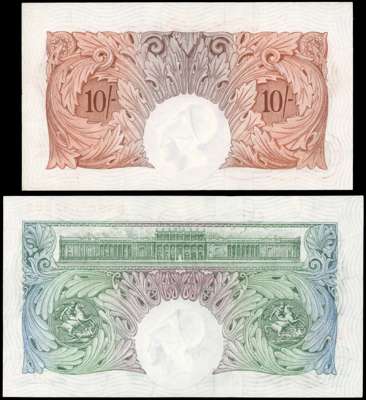 Bank of England, P S Beale, Ten Shillings, Mar. 1950, E06Z 032373,, (Dugg. B266); One Pound Mar. 1950, D79C 137092, (Dugg. B268). First good Very Fine, second Extremely Fine. [2 notes].
