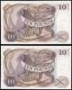 Bank of England, J S Fforde, Ten Pounds, Jan. 1967, A58 405233 and 405234 (consecutive), (Dugg. B316), Both good Extremely Fine/Uncirculated. [2 notes].