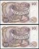 Bank of England, J B Page, Ten Pounds, 1971, B51 631982 and 631983 (consecutive), (Dugg. B326), Both good Extr…
