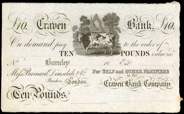 BURNLEY, Craven Bank, for Messrs. Barnard Dimsdale & Co. London, unissued £10.,18., no signatures or serial nu…