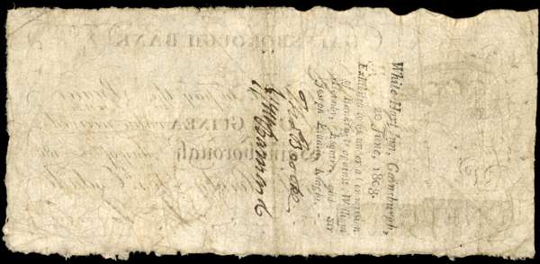 GAINSBOROUGH, Gainsborough Bank, for William Hornby & Joseph Esdaile, 1 Guinea, 5 October 1801, serial number 3238A, Wm. Hornby signature, upper l., vignette of the bridge over the Trent, printed bankruptcy notice on rev. (Outing 811a). About Fine.