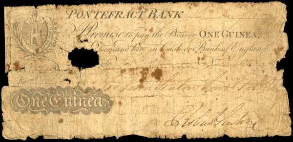 PONTEFRACT, Pontefract Bank, for John Seaton, Sons & Foster, 1 Guinea, 1 July 1809, serial number 1900, Robert…