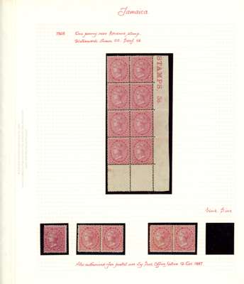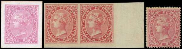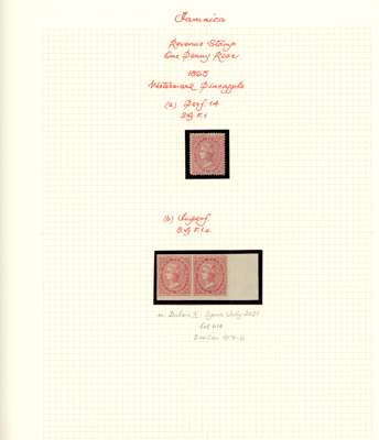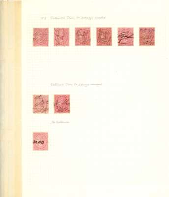 Postal Fiscal: 1865-73 Type F1 design, study collection including die proof in issued colour (stamp sized), first issue imperforate pair (SG F1a), mint examples in all wmks, including crown CC lower right marginal block of eight, covers (2), and a usage study including postal covers (2), documents (4), and various revenue and postal cancellations. A comprehensive collection of this charming design. SG F1/3