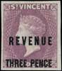 1883-93 'THREE PENCE' on 6d lilac, imperforate plate proof on watermarked paper, with traces of o.g. As McClellan R22. | SG 22