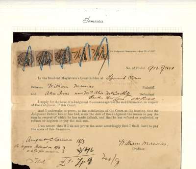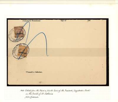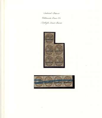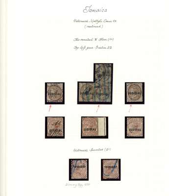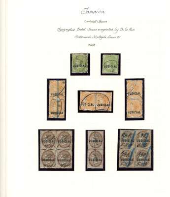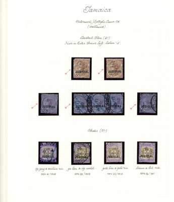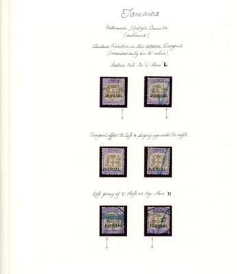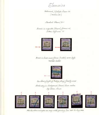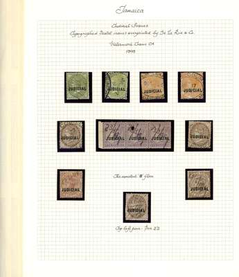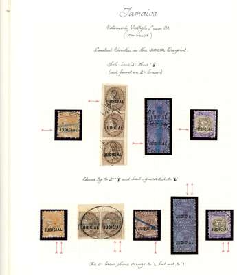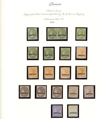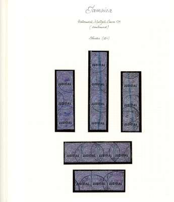 Judicial: 1898-1908 comprehensive collection on original pages, comprising mint 3d (7) 6d (8), 1s (4) 2s (2) and 5s, plus upper marginal vertical pair of 1s showing current number '172' lower stamp variety '$' for 'S' in 'SHILLING' the variety unmounted mint. A rarity on the postage issues, surely unique as a Judicial revenue, with the vendor having assembled just 23 examples of all denominations in unused condition in 40 years! Offered with the used study collection selected from the Oswald Marsh stock including cancellations, multiples, 2s Venetian red with watermark inverted, documents (3) and minor frame plate flaws. An impressive and unrepeatable group of these popular issues. McClellan J1/16