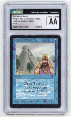 Limited Edition Beta copy of Ancestral Recall, graded as ‘Authentic Altered’ by CGC. As part of the Power 9, this card has a legendary status among collectors and players from all eras of Magic. The grade is explained by a description from CGC stating: 'Evidence of color added: Edges/Corners/Surface'. However, this card still looks absolutely stunning, making this a great choice for collectors looking for a visually impressive example of the card.
