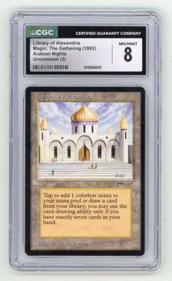 Library of Alexandria from Arabian Nights, graded an impressive NM/MINT 8 by CGC. This card features Mark Poole's stunning artwork that has long been a favourite among fans.