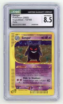 A NM/MINT+ 8.5 Gengar #13 Holo from Expedition, the first main expansion of cards from the e-Card Series, released September 15, 2002.