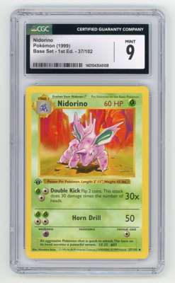 A MINT 9 graded Nidorino #37 1st Edition from Base Set.