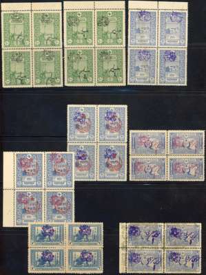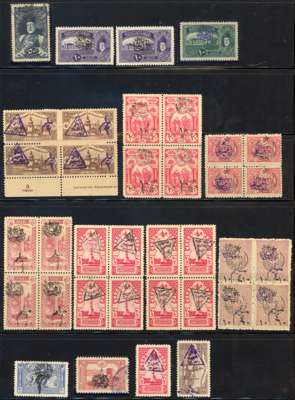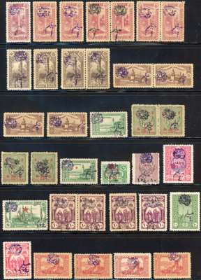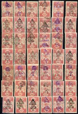 Arab Kingdom: Duplicated accumulation with overprinted and surcharged values including multiples, largely full or large part o.g., 1920 triangular overprint/surcharges on Turkish fiscals, 1920 duplicated Damascus issues unused and used; fair to fine condition, not all stamps are genuine
