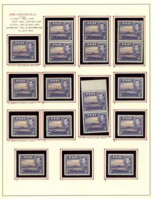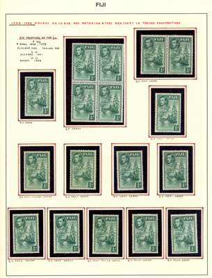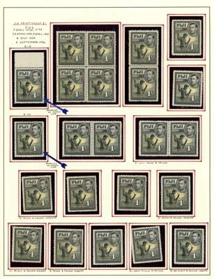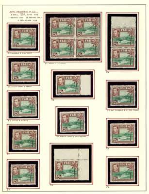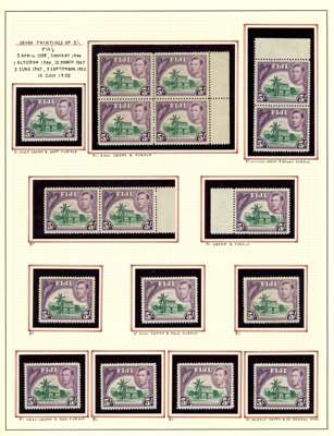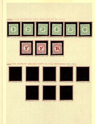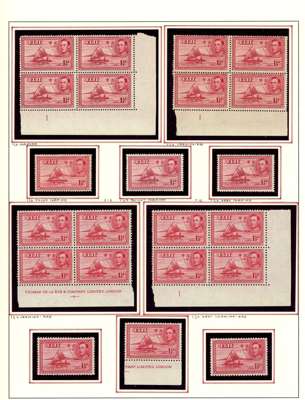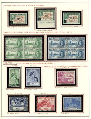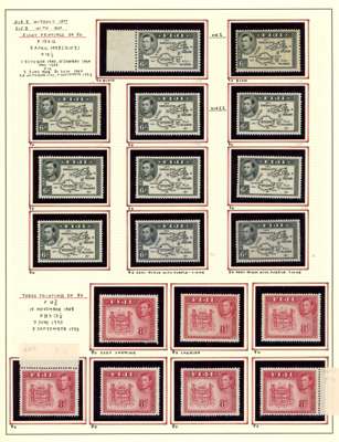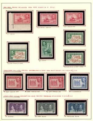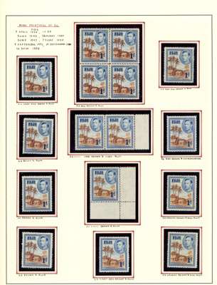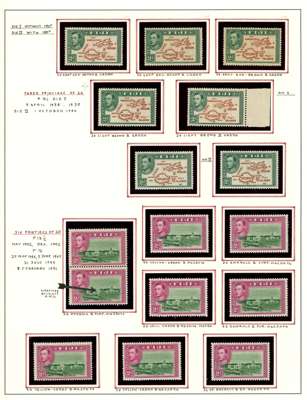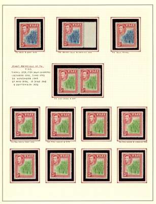 1937-55 KG VI mint collection (292) on leaves with many unmounted. Principally a study of shades/printings of the definitive set with some multiples, a few varieties noted (2d scratched buildings in unmounted pair), values to 10/- (three, all unmounted) and £1 (three, two unmounted); Dues set, hinged. An interesting lot for the specialist