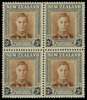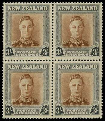 1947 3/- red-brown and grey block of four with watermark sideways-inverted, unmounted o.g.