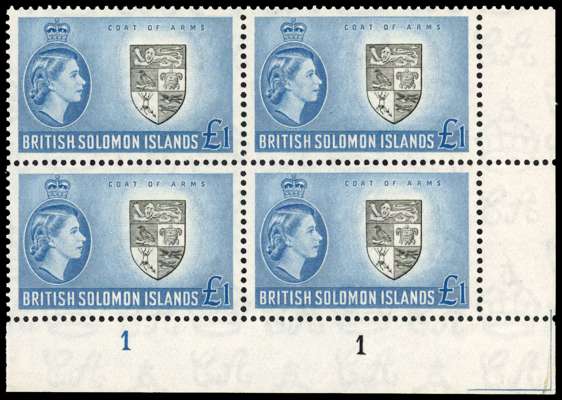 1958 £1 black and blue lower right corner block of four witih Plate 1-1, unmounted o.g. SG 96, £180