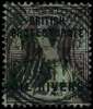 1893 ½d on 2½d handstamped Type 4 in green, heavily used with portions of three squared circle cancels. SG 11, £275