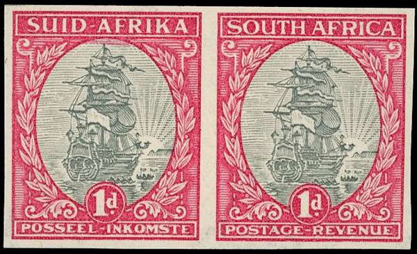 1934 hyphenated 1d grey and carmine imperforate pair, watermark inverted, unmounted o.g. SG 56a, £180