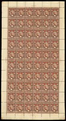 1896 (Dec) 2a red-brown and red, wmk single rosette, complete sheet of 60 (6x10), brilliant o.g. (mounted on six stamps only). A rare and lovely item, with scope for a plating study, as a result of the use of a pantograph to draw the values ("2 ANNAS 2").