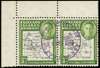 1946 Thick Map ½d black and green corner pair, Plate 1 R1/2 missing 'I', with full violet South Georgia CDS of 20 SEP 1946. A couple of slightly shorter perfs at lower right, otherwise very fine