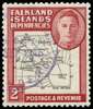 1946 Thick Map 2d black and carmine used with part violet South Georgia CDS of SEP 46, Plate 1 R3/9 extra dot by oval. A couple of short perfs at top, otherwise very fine