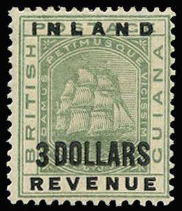 BRITISH GUIANA SG 187 1888-89 $3 GREEN LPOG