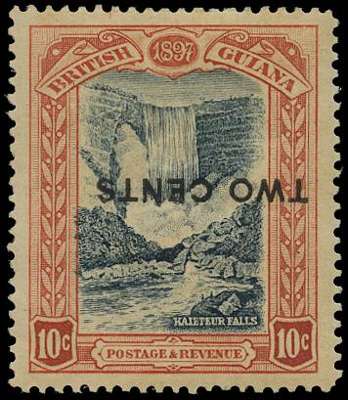 BRITISH GUIANA SG 223ca 1899 2c ON 10c ERROR SURCH INV AND STOP OMITTED O.G.