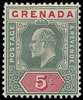 GRENADA SG 75(a) 1904-06 5s GREEN AND CARMINE VAR DAMAGED FRAME AND CROWN O.G.